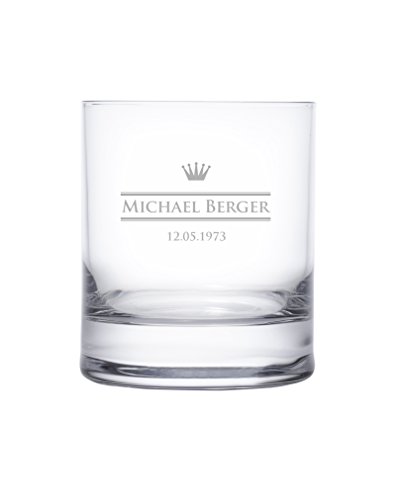 - PRODUIT PERSONNALISÉ: Verre à Whisky avec une gravure individuelle de haute qualité de votre nom, une date de votre choix et une petite couronne